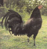 Typ: Rücken kurz und flach, breit in den Schultern, und sich verjüngend zum Schwanz hin. Brust breit, voll und markant, mit großen, starken Brustmuskeln, Brustbein nicht tief oder spitz.Flügel groß lang und kraftvoll mit großen, starken Federkielen die großzügig die Oberschenkel schützen. Bauch knapp und fest. Schwanz groß, aufwärts und gespreizt getragen, Hauptsicheln und Federkiele groß und fest. Oberschenkel rund und muskulös, folgen der Linie des Körpers oder sind leicht gebogen.
